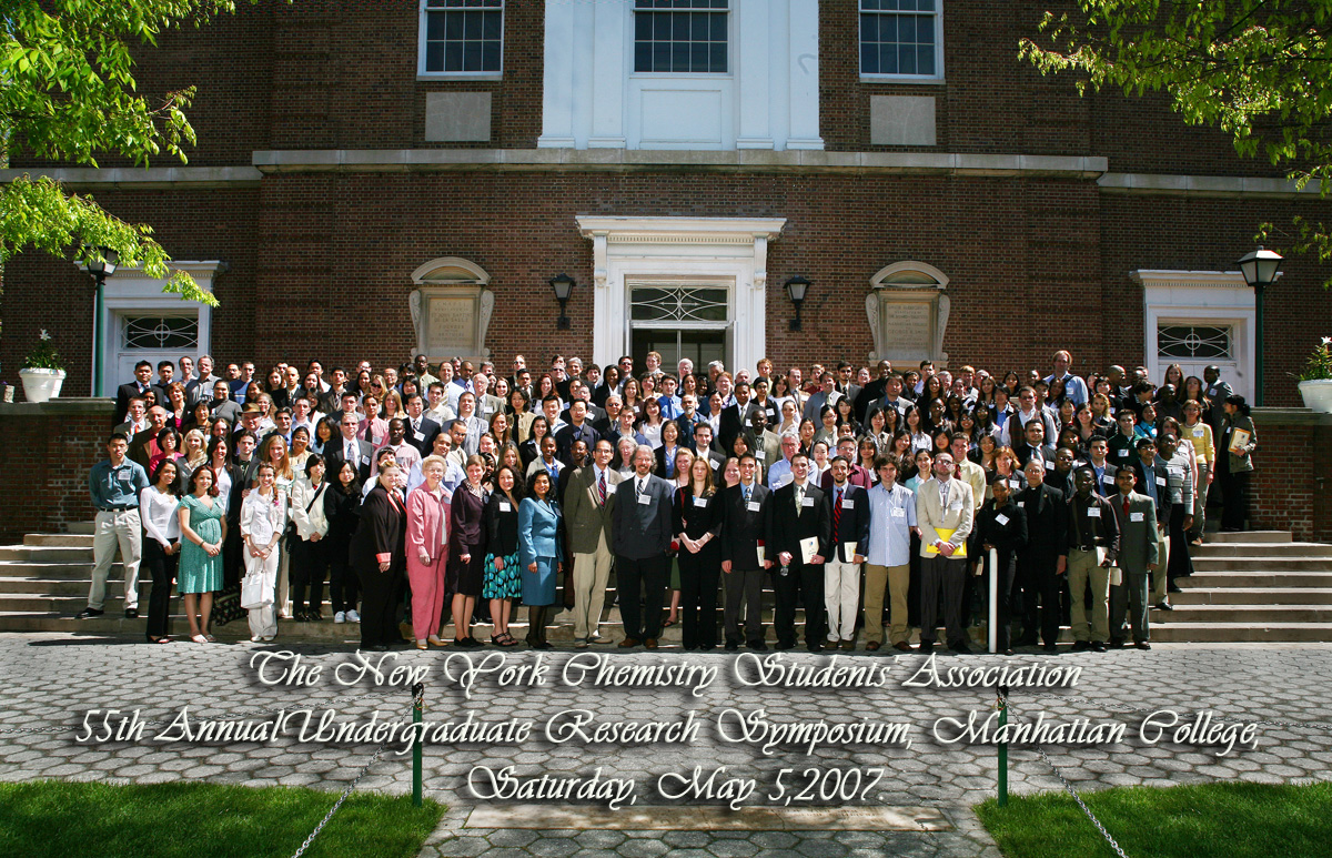 The New York Chemistry Students’ Association of the New York Section held its 55th Annual Undergraduate Research Symposium on Saturday, May 5, 2007 at Manhattan College, Bronx, NY. The three co-chairs, Dr. Sharon Lall-Ramnarine (Queensborough Community College), Dr. JamieLee Rizzo (Pace University) and Dr. Alison Hyslop (St. John’s) working together and sharing the many activities made this 55th URS so successful.